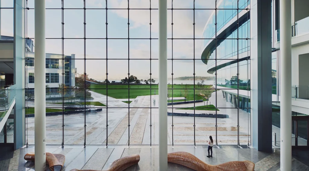 Sentech’s VetraNet systems are used to design façades that conform to flat, curved or anticlastic surfaces, and can be used for blast, impact rated, and bullet-resistant applications. Our systems are typically designed with tempered glass types which enables the highest performance through efficient load transfer, energy savings and maximum transparency. The simplicity of these systems allows for the design of façades that integrate seamlessly with adjacent structures, with load carrying capacity that far exceeds the capability of conventional wall systems. These systems can be designed with coated-insulated, laminated, or monolithic glass.