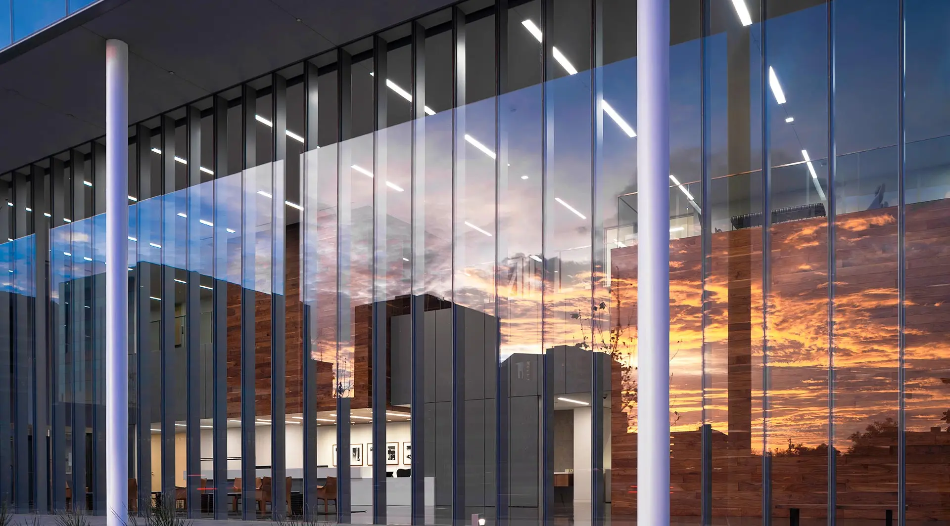 The structural glass entrance walls of Concho Tower III were originally designed by RWA Architects as an expansion to the Concho Resources Headquarters in Midland, TX. During the design, Sentech’s VetraFin A-Series System was selected to provide a highly transparent, cost-effective aluminum fin structural glass system with full-height glass panels. This allowed for the utmost flexibility in design and finish options. In addition, simple lines and minimal connections enabled the team to achieve a unique, streamlined aesthetic with no exterior hardware. This was critical to the design mandate: to increase natural light flow and a feeling of openness in the space. The result is an entrance environment where both visitors and employees alike feel welcome.