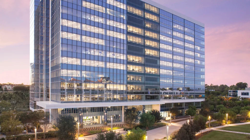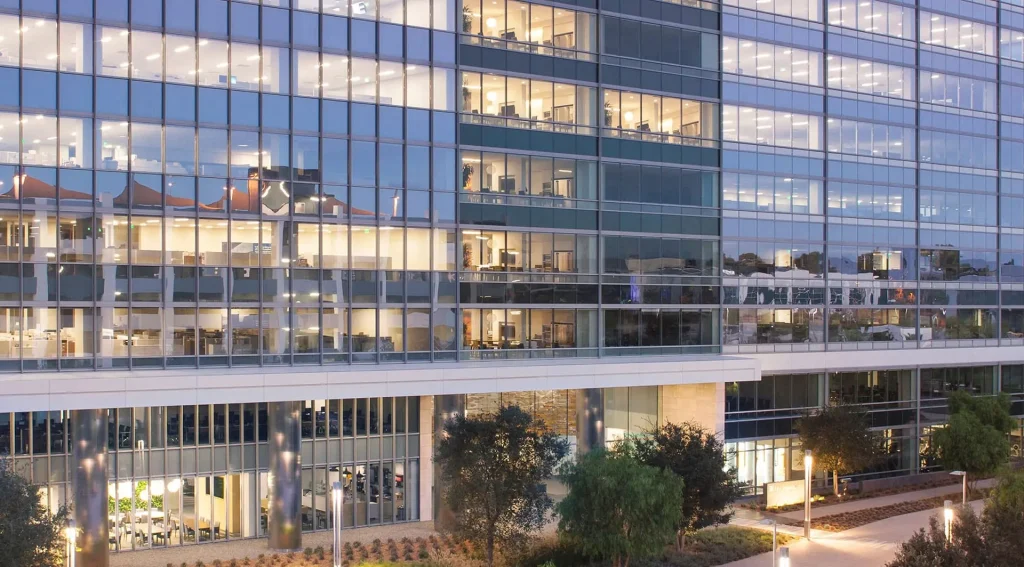 The La Jolla Commons Campus is located in the heart of San Diego, offering views of the Pacific Ocean, abundant retail and corporate office space and access to the city’s technology hub. The structure is one of the most sustainable high-rise office buildings in Southern California and was designed with the goal of saving operational and utility costs through improved energy and planning efficiency. The glass façade at the building lobby entrance is a highly transparent suspended glass fin system using jumbo-sized low-iron glass panels and minimal connections. The goal was to achieve a unique look, giving the illusion of unsupported glass that defies gravity.