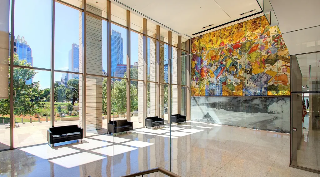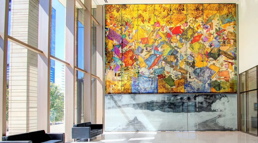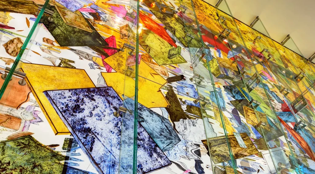 Dubbed “The Austin Wall”, this art centerpiece featured in the United States Federal Courthouse in Austin, Texas is a vibrant, abstract, monumental glass mural by artist Clifford Ross. Originally designed by international consultancy Dewhurst MacFarlane and Partners, the wall was commissioned by the U.S. General Service Administration’s Art in Architecture Program. An elegant ode to contrasts and the illusion of lightness, the translucent 28′ by 28′ glass wall weighs nearly 3 tons, and uses Sentech’s Specialty Glazing solution and VetraPoint Connection Series. The wall system’s glass panels are supported by Sentech’s specialty fittings that were bonded to the back-side of the panels to ensure that all fin connection plates and hardware was hidden within the body of the fins themselves. This design ensures that no hardware is visible from the front of the façade, placing the focus on the striking aesthetics of the art itself.